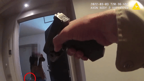 视频中可看到,3月3日中午,一名警察来到一个住户门前,并敲门。
