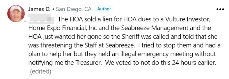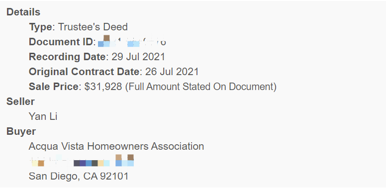 身为HOA董事会成员的James站出来表示,HOA想将李艳欠款的留置权卖给了投资公司,而对于这种行为,前期自己一直在阻挠这样的决定,但却在多方商讨,其不在场的时候,将李艳房子以32,000美元的价格出售债务留置权,卖给投资公司。