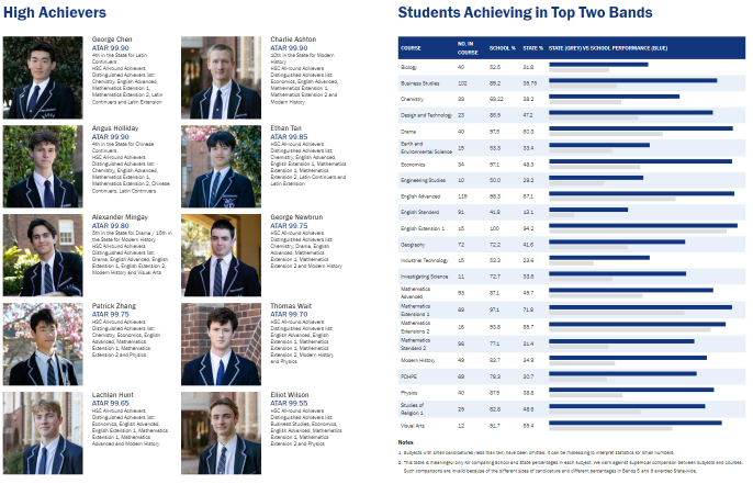就 HSC 成绩而言,排名第一的私立女子学校是 SCEGGS Darlinghurst。该校在2023年HSC中的表现如下所示: