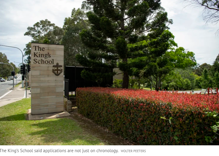 North Parramatta的The King’s School称,它没有“按时间顺序”的后补名单。学校表示,它正在寻找能够“接受学校在学术卓越、品格发展和基督教社区这三个独特支柱上提供的全部服务”的家庭。