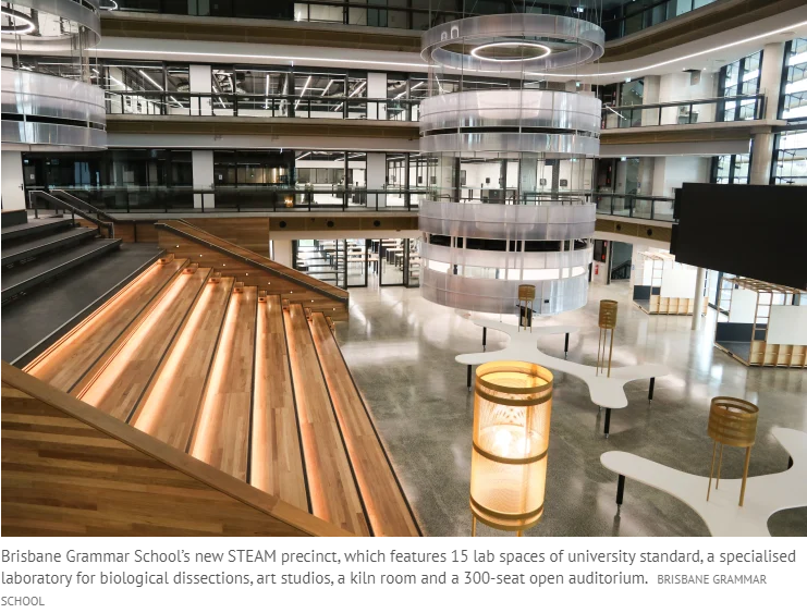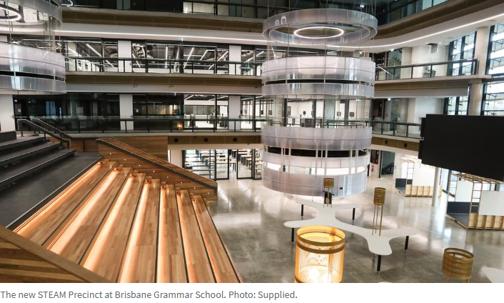 今年 2 月,该校斥资 8,000 万澳元开设了六层楼的 STEAM 专区,该中心占地 17,800 平方米,集科学、技术、工程、艺术和数学设施于一体。