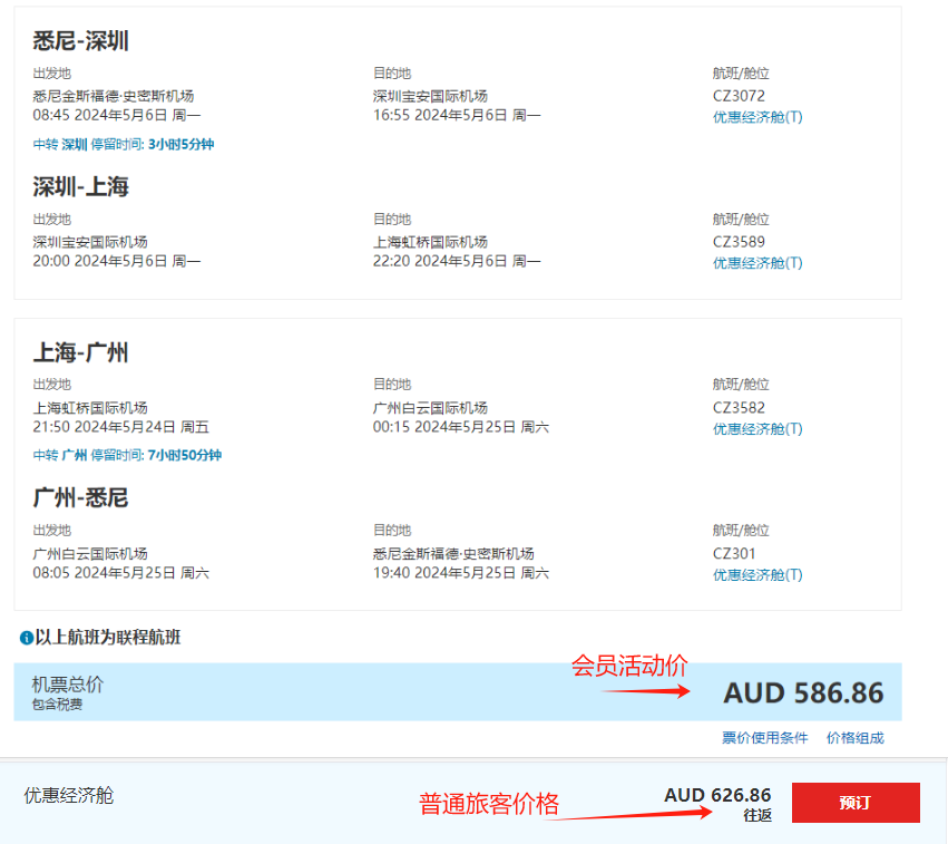 2.购票渠道:南航澳洲官方网站www.csair.com/au;