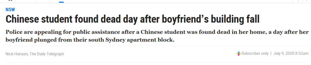 收藏 悲剧!19岁中国少女命丧悉尼公寓!身上多处伤痕!男友坠楼昏迷,醒来后承认谋杀,然而…