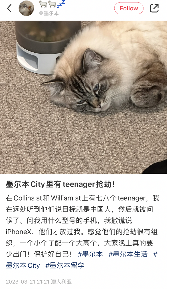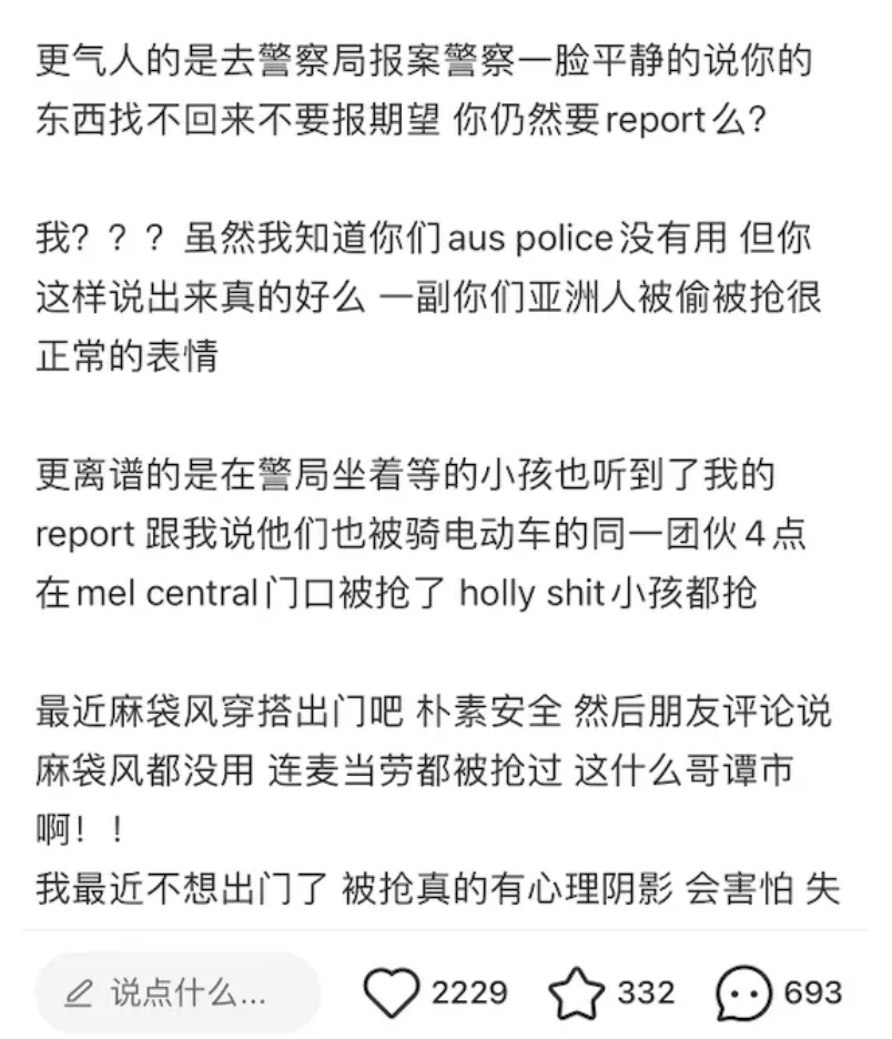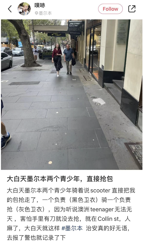 有网友表示自己在路边站着时,就听到了几个澳洲青少年在密谋抢劫,还明确表示目标就是中国人!