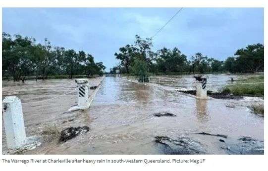 周五上午,气象局发布了Warrego River重大洪水警报。据记录,Augathella的河水水位为5.36米,预计还将上涨,而Charleville的河水水位为4.72米,并且还在上涨。周五上午晚些时候,Charleville的河水可能会超过5米的中度洪水位。预计周日洪水风险将有所缓解,下周一和周二降雨将逐渐减弱。