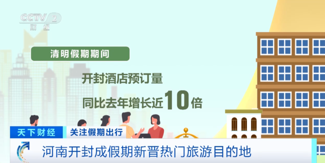清明假期期间,河南开封的酒店预订量同比增长近10倍。游客不光来自周边城市,还有北京、上海、山东等地,最远的游客来自3000多公里外的新疆乌鲁木齐。数据显示,假期期间,开封景区的门票预订量环比增长超3倍。