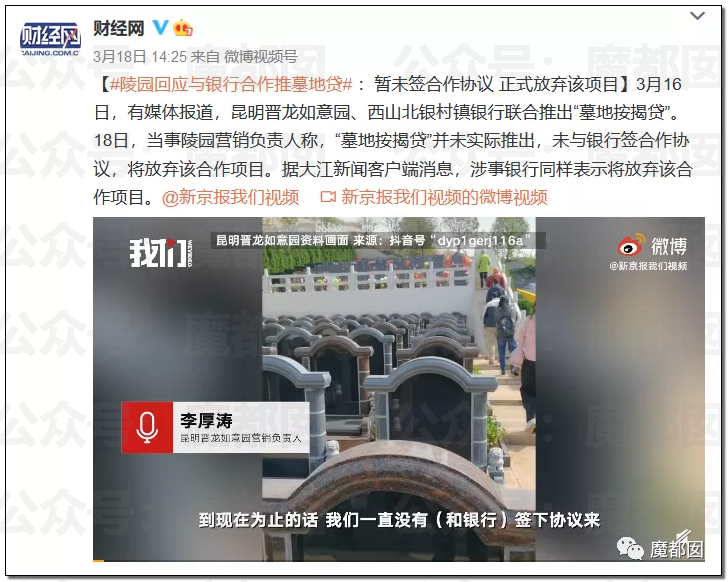 后期更是离谱……有商家应声推出了“墓地贷”:行业特殊,该业务不需要抵押,信用达得到就可以贷了,客户如果70岁、80岁来购买了,可能就针对他的孙子,可以作为贷款人。