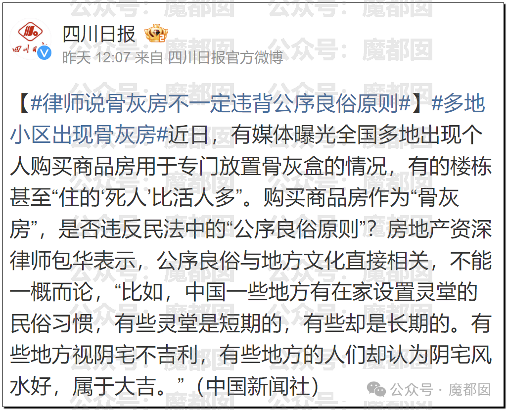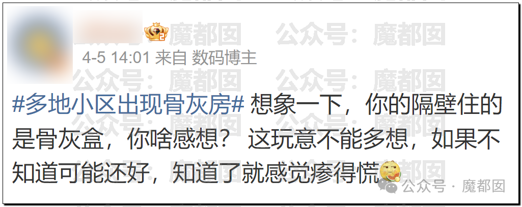 收藏热搜震动!网曝某小区有人买房放骨灰!砌墙封死阴森可怖!