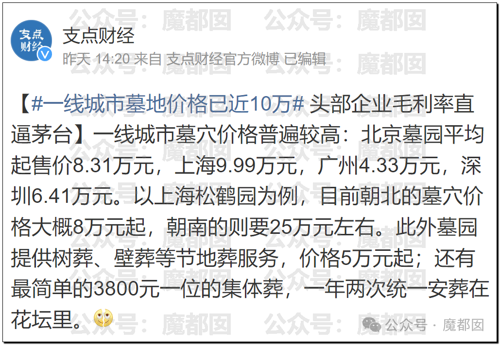 这两天很多财经媒体都在开始讨论墓地的价格。