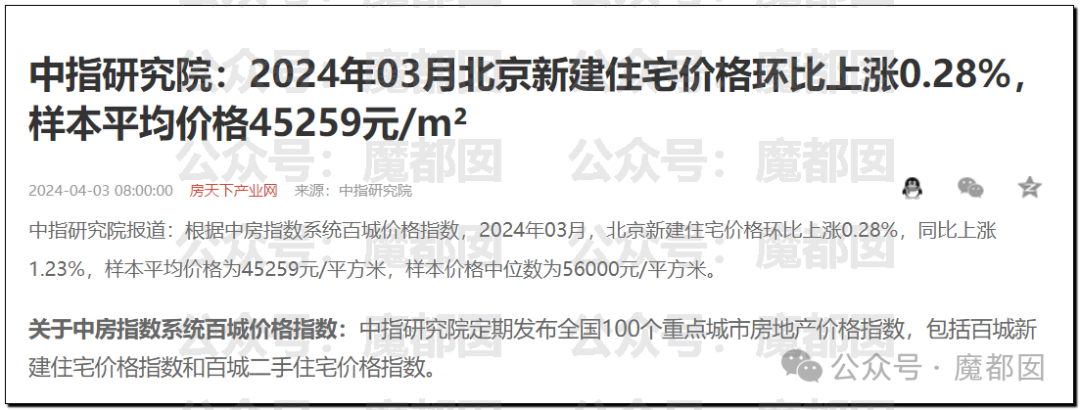 我们拿北京为例,2024年3月北京新房均价不过4万5左右。
