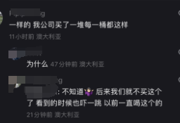 有网友立刻在下面留言,说他们公司买了一堆桶装水也是有一样的问题,他们从此以后再也不喝这个水了。