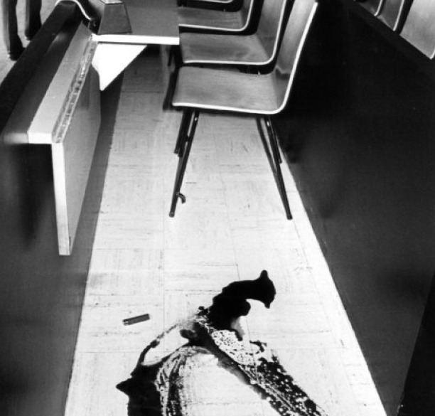 几分钟之后,德莫拉就满身是血地倒在了法官席后面的地板上,但特尔托似乎还不解恨,冲上去愤怒地用枪击打他的头部。