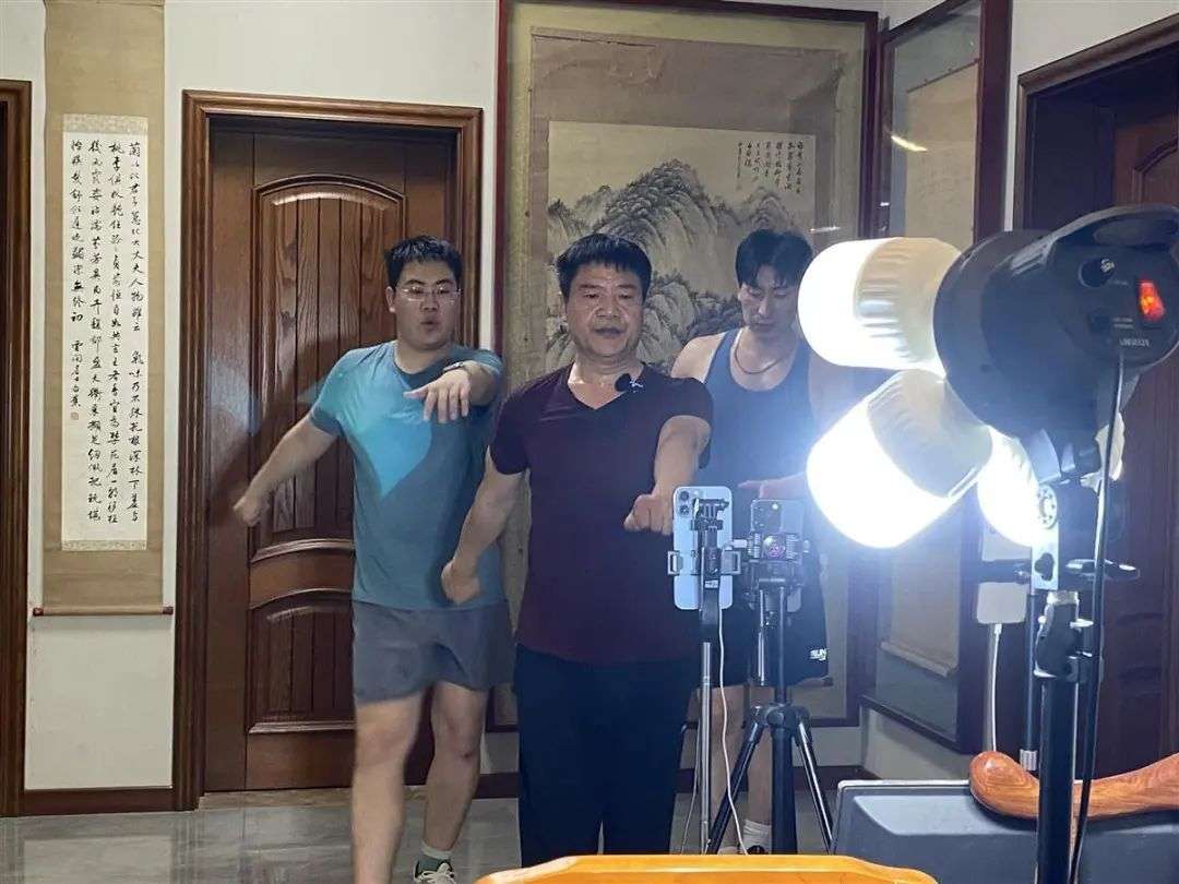 晚上7点半,陈国平准时开了直播,他带着两个年轻的小伙子直播跳操。