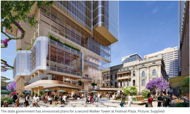 州政府于周二公布沃克公司(Walker Corporation)在Festival Plaza开发的第二座高层建筑——一座的38层的摩天大楼,可容纳近10,000名员工,预计每年将为该地区带来13亿澳元的经济活动。