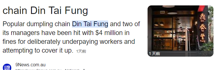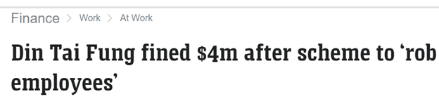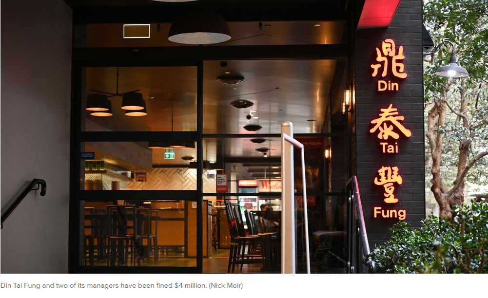 备受欢迎的饺子连锁店某泰丰及其两名高级管理人员被处以超过 400万澳元的罚款,联邦法院认定这是一起“精心策划的抢劫员工辛苦赚来的工资的(犯罪)计划”。