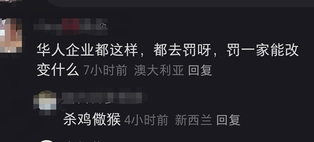其实,在某泰丰被罚后的评论区中,很多澳大利亚当地的华人都有类似下面这样的留言: