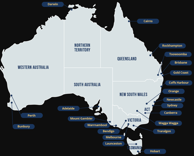FWO在澳洲各地都有办公室