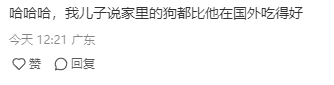 还有留学生这样描述:家里的狗吃的都比在国外吃得好。