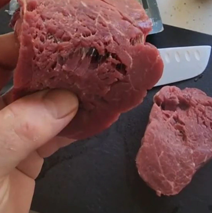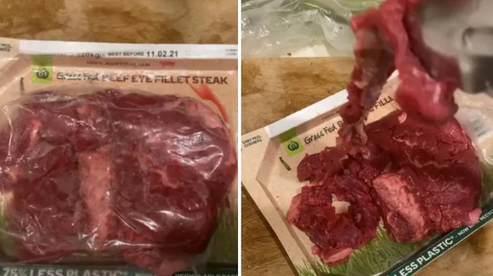 一名购物者说他从 Woolworths 买的菲力牛排(Eye fillet):是由不同的肉块粘在一起的!