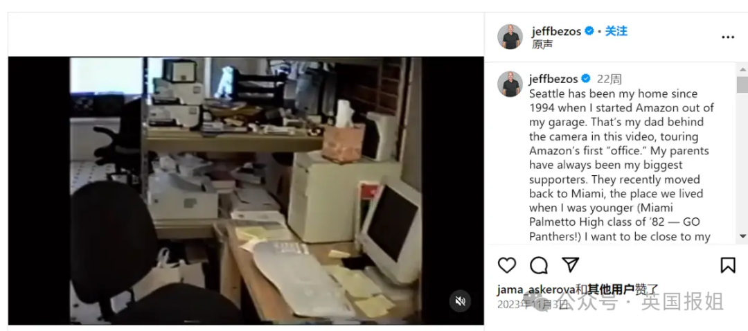 他发了一条视频回顾他过去在西雅图白手起家创立亚马逊的几十年时光,依依不舍地说道: