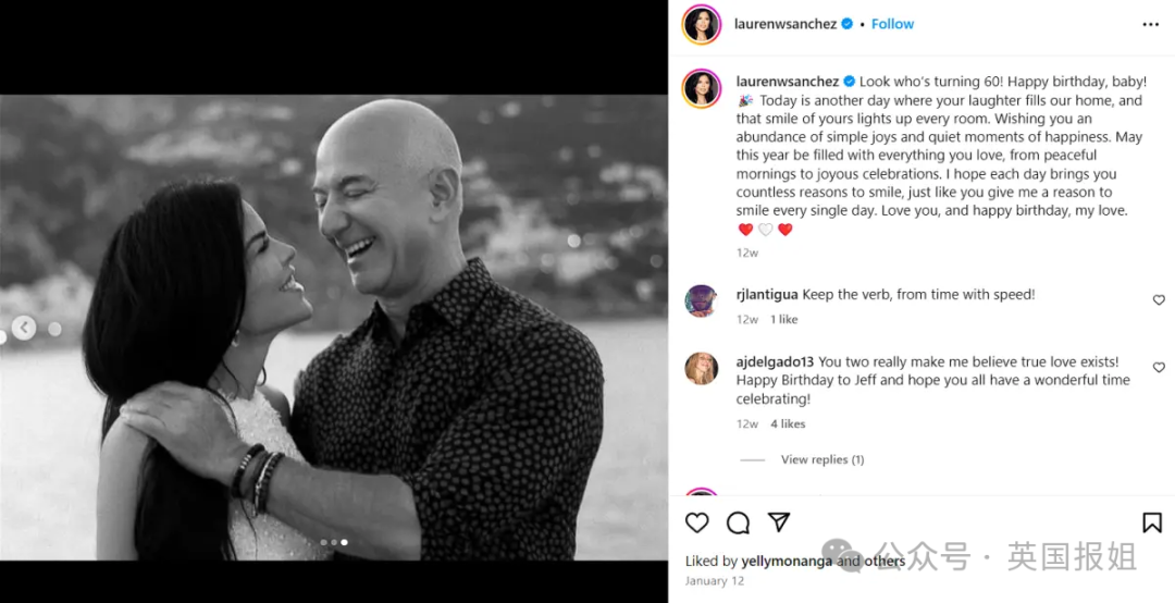 这边桑切斯给足了情绪价值,另一边贝索斯也展露了霸道总裁的一面,妥妥地双向奔赴。