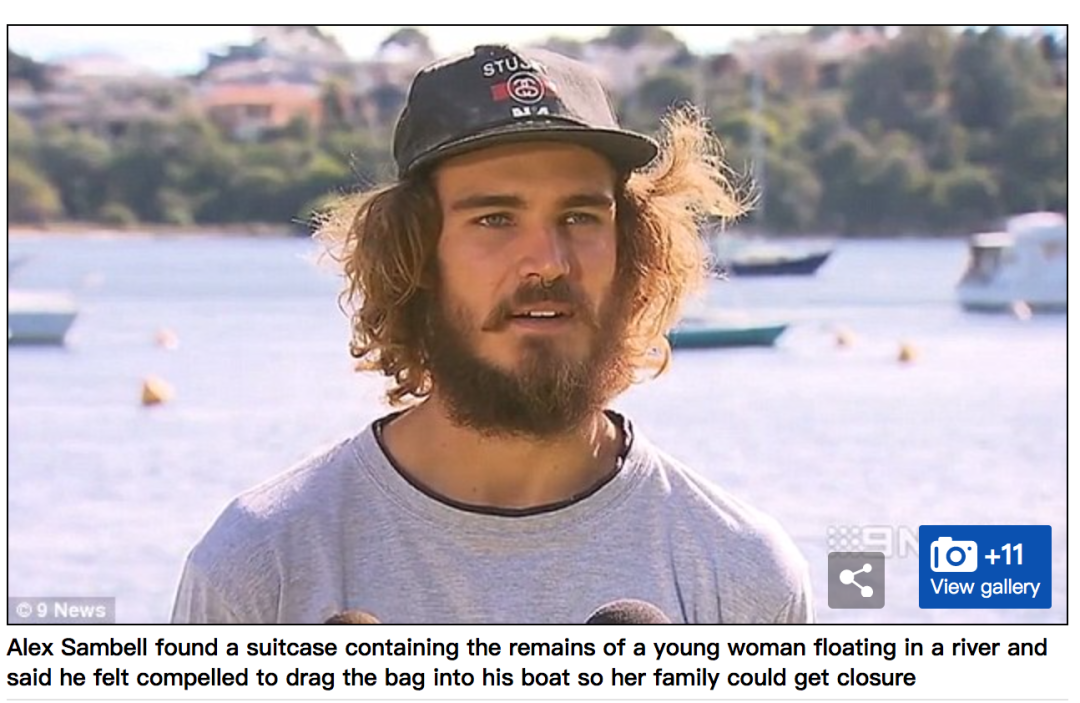 21岁的亚历克斯·桑贝尔(Alex Sambell)经常和朋友一起在天鹅河上打渔,作为专业的渔民,他们通常会起很早去下网。2016年7月2日,他们于七点半左右抵达了天鹅河,如往常一样,平静的河水,安静的河面。