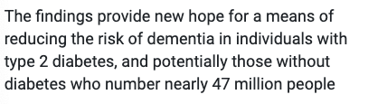 虽然目前还不清楚为什么二甲双胍有这样的效果,但这个发现也为在全球范围内拥有痴呆症风险的近4700万人提供了新的希望。