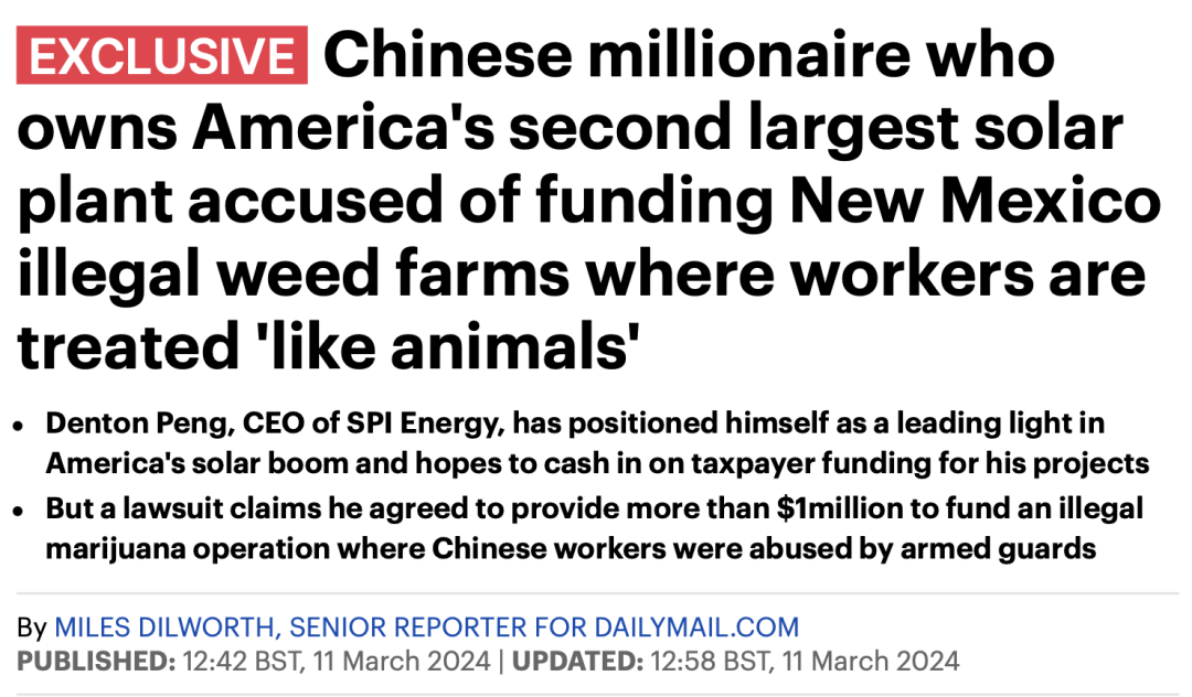 诉讼中指,SPI能源公司的子公司CBD Group为新墨西哥州大麻业务提供资金,同时发展太阳能,