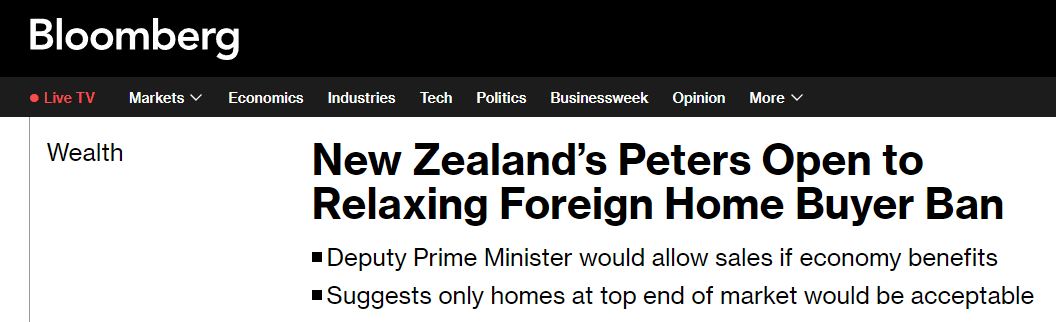 具体而言,Peters在接受彭博社采访时表示,他将考虑放宽对海外高净值买家的投资限制,只要符合新西兰的国家利益,有兴趣投资5000万纽币的海外买家可能会获准在新西兰购买住房。