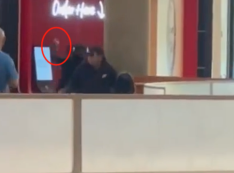 由于事情发生的很突然,商场内一些距离较远的购物者见状赶紧带着孩子远离...