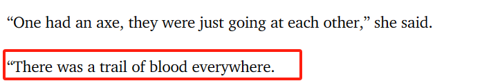 她的同事说,“我看到砍刀很长,到处都是血,很可怕...这是一场2v1斗殴,其中一个人应该是带了一个小弟,他们肯定是青少年...”