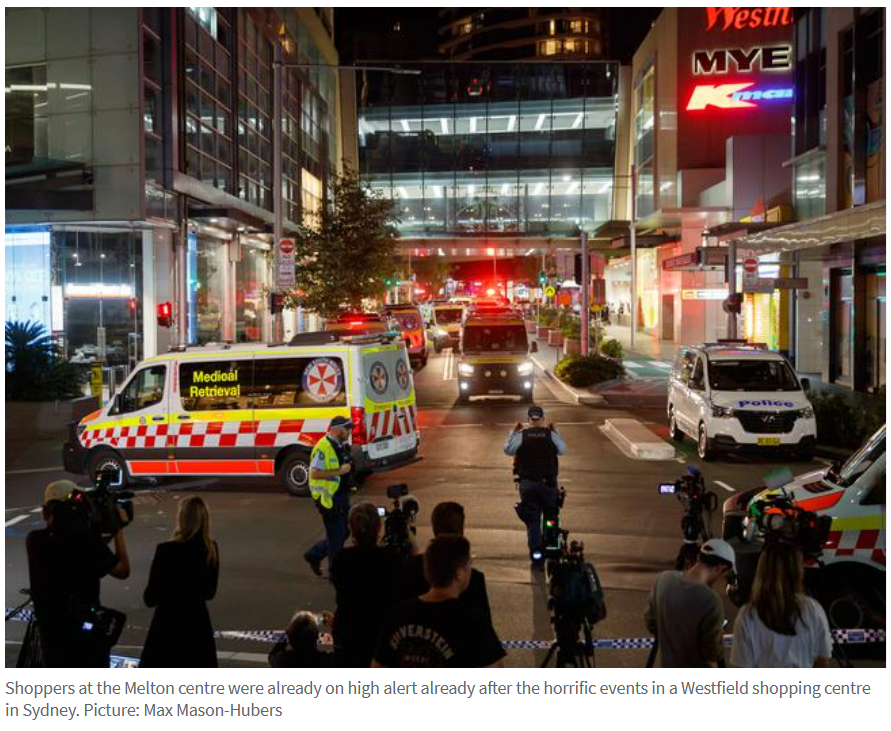 在悉尼连续发生两起恶性袭击案后,墨尔本商场开始加强巡逻,但昨天墨尔本一购物中心还是顶风作案出事了...“看到好多血”!