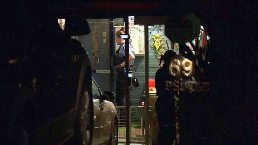 警方称,这三名男子穿着深色衣服,假装成警察,包括出示假徽章,敲响了位于 Allinson Drive 的家门后进入了这所房子。
