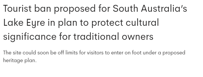 根据一项拟议的管理计划,出于对Arabana文化的尊重,所有对湖床的娱乐性访问将被禁止。