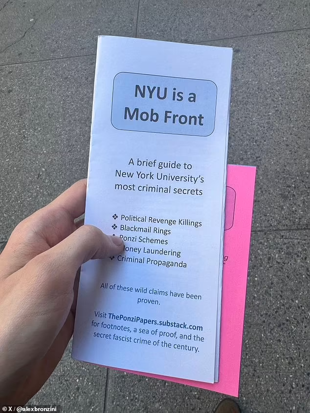 周三,他还在 Instagram 上发布了一条帖子,称他将“在华盛顿广场公园度过一周,揭露纽约大学所有的肮脏事件”。