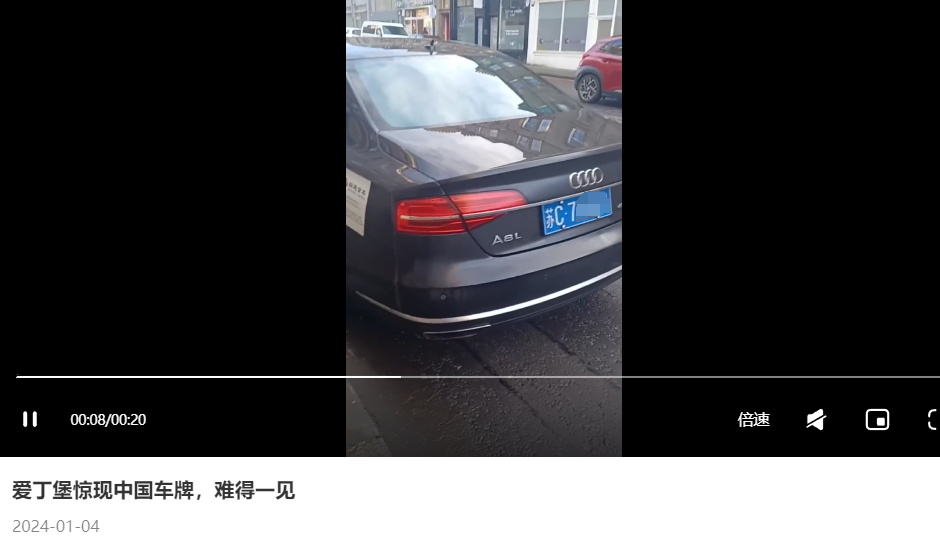 还有一个帖子分享了一个视频,内容是这位博主在苏格兰的首都爱丁堡看见了一辆黑色奥迪蓝牌苏C的轿车,为此该博主表示难得一见。