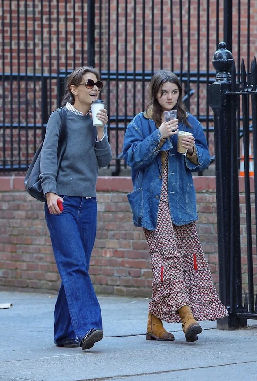 生日首次出现又冲上了热搜!苏瑞与母亲Katie Holmes(凯蒂·霍尔姆斯)在纽约外出,悠闲地散步、喝咖啡。