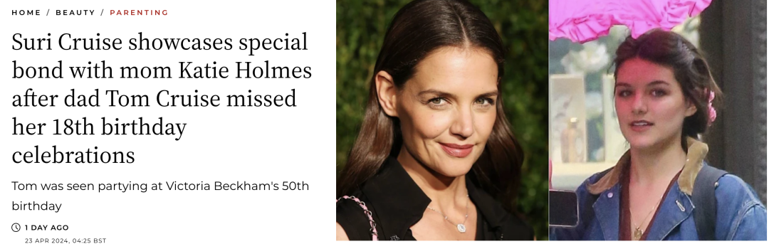 而彼时,她那“消失了12年的爸爸”Tom Cruise正在几千公里外的伦敦拍新戏。有消息表示,这位父亲今年也依然不会出现在女儿的面前,给她庆生。