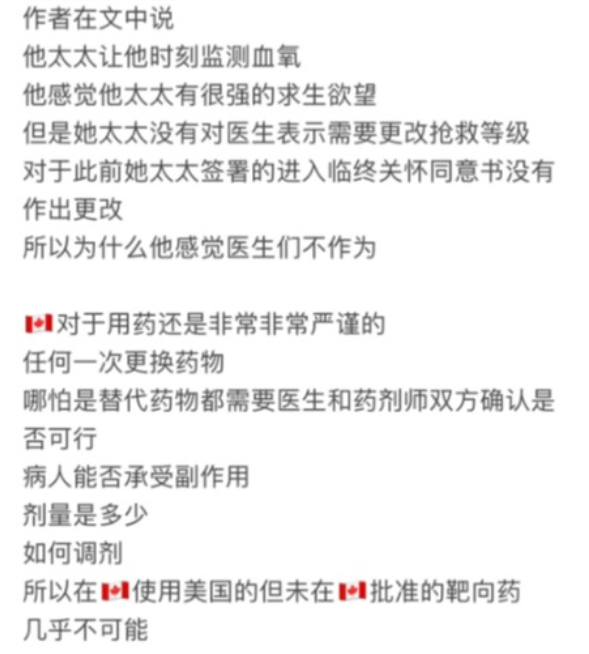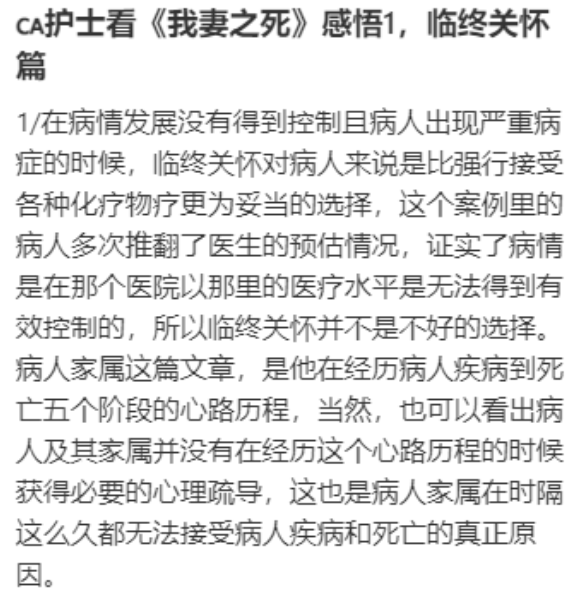 另一位在加拿大当护士的博主就这个病例中的临终关怀也表达了看法,认为其具有一定的合理性: