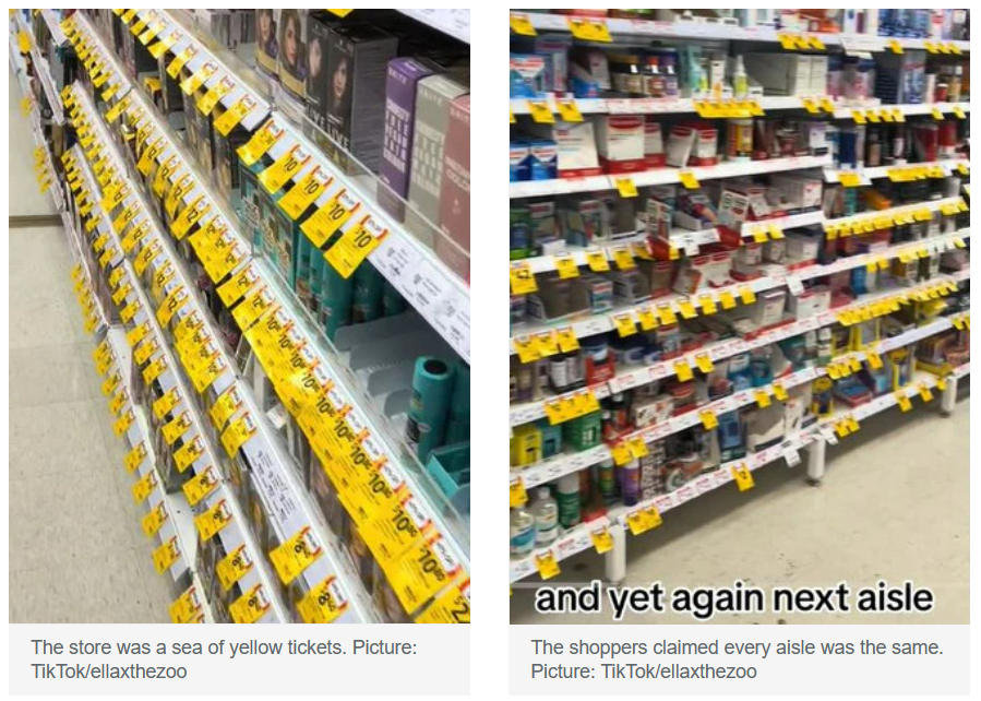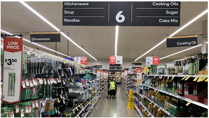 一对前往Coles线下超市的夫妇就惊讶地发现,在一些过道里,几乎每件商品前都贴有黄色的降价标签,