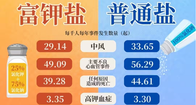 研究结果显示,食用富钾盐可以降低血压,减少中风、心脏病发作和早亡的风险。另外,该报告综述了其他21项相关研究,结论表明富钾盐对全球绝大部分人的健康都有益。