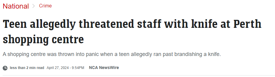 维州和珀斯也有类似事件发生...现在的澳洲,真的不像从前那样安全了,大家出门时特别是前往购物中心一定要更加小心谨慎,避免陷入到危险之中。