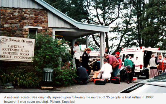 1996年4月28日,塔州亚瑟港大屠杀案中,28岁,无业,患有自闭症的男子Martin Bryant持数挺半自动步枪和冲锋枪冲入当地著名的黑箭咖啡厅和西斯岬海角大楼向游客扫射,造成35人死亡(包括两名儿童)、17人受伤,是澳洲史上最惨烈的枪击犯罪。
