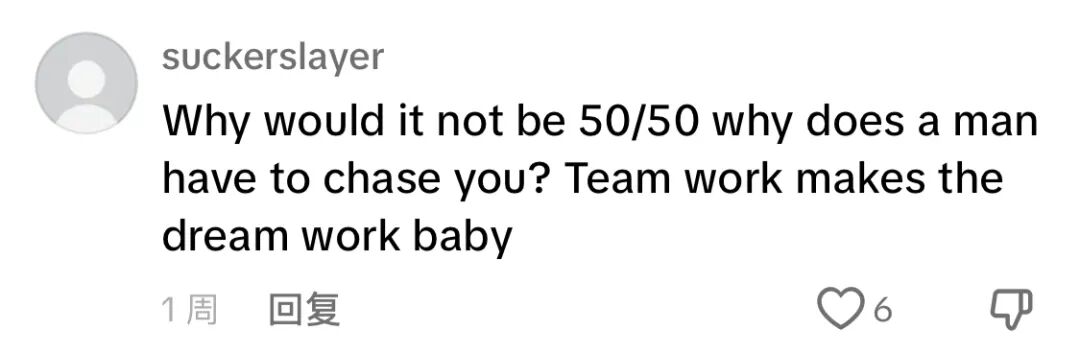 也有人比较中立,说“为啥不50/50平等相待呢?团队合作才能让梦想成真。”