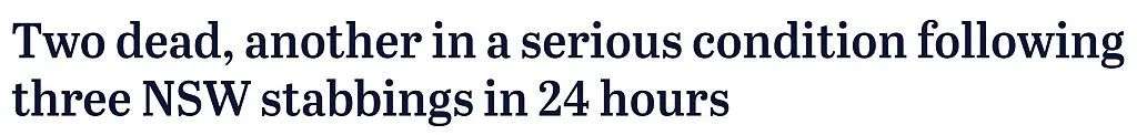 《悉尼晨锋报》报道称,新州在短短24小时内连续发生多起持刀伤人案,导致2死1重伤。而在珀斯,1名青少年持刀闯入购物中心引发恐慌。