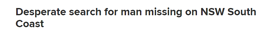 此前,澳洲九号台新闻报道称,一名20岁的华人男子在新州South Coast失踪,救援人员于今晨展开大规模搜索行动。
