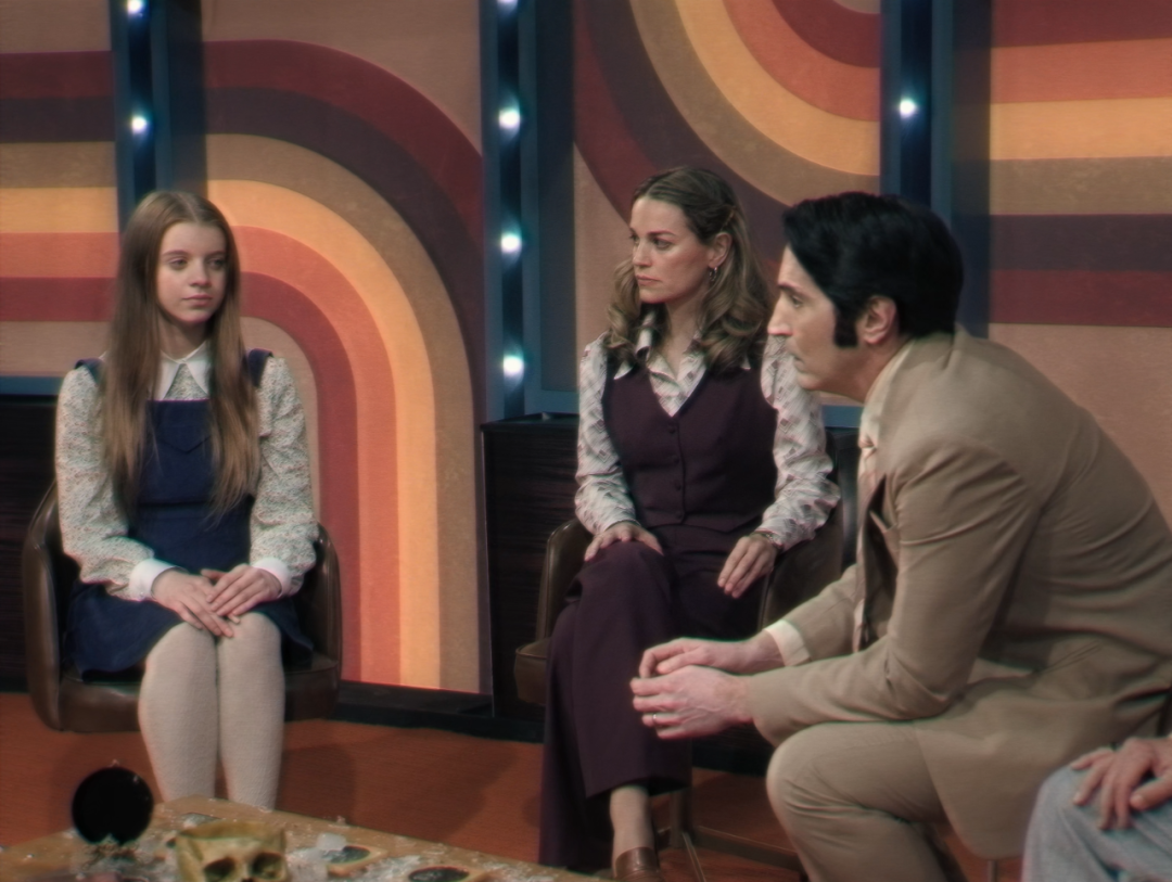 和绝大多数恐怖片不同,《魔鬼深夜秀》并没有在一开始就进入正题,而是用一段七分钟的片头,交待了美国七十年代的时代背景和电视台概况,尤其是男主角杰克·德洛伊的人生际遇。