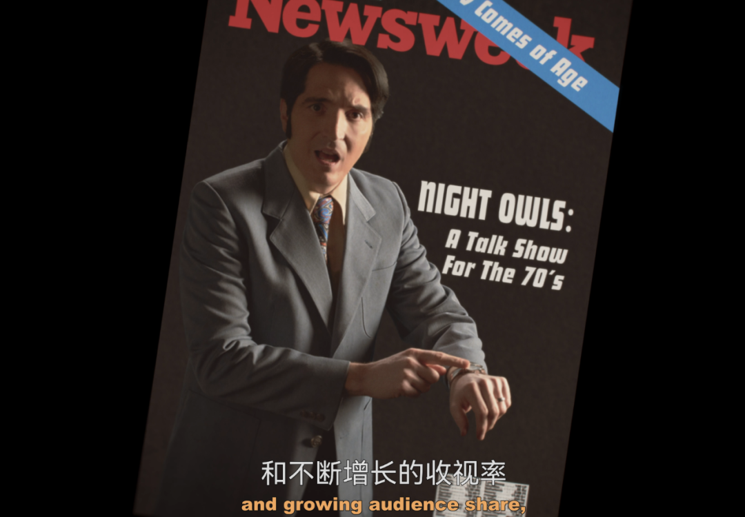 比如,复古的电视画面,是公开播出的节目;而黑白色调的宽幕,是幕后人员的交流。