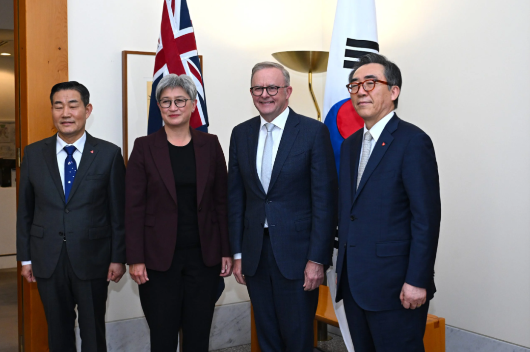 阿尔巴尼斯在X说,外长和我周一会晤了韩国外长和国防部长,韩国是澳洲重要的地区伙伴,两国正在努力塑造一个开放、稳定和繁荣的地区。