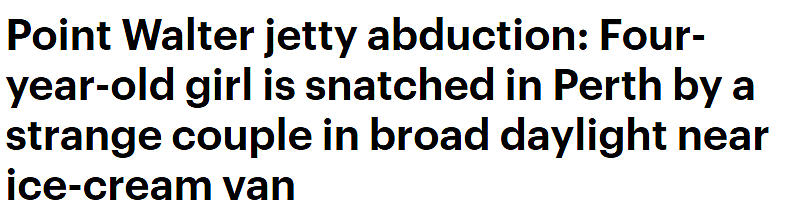 同样的事情,其实每年都有发生。就在去年澳洲日当天,热门游泳地点的一名4岁女童险些被一对夫妇绑架。